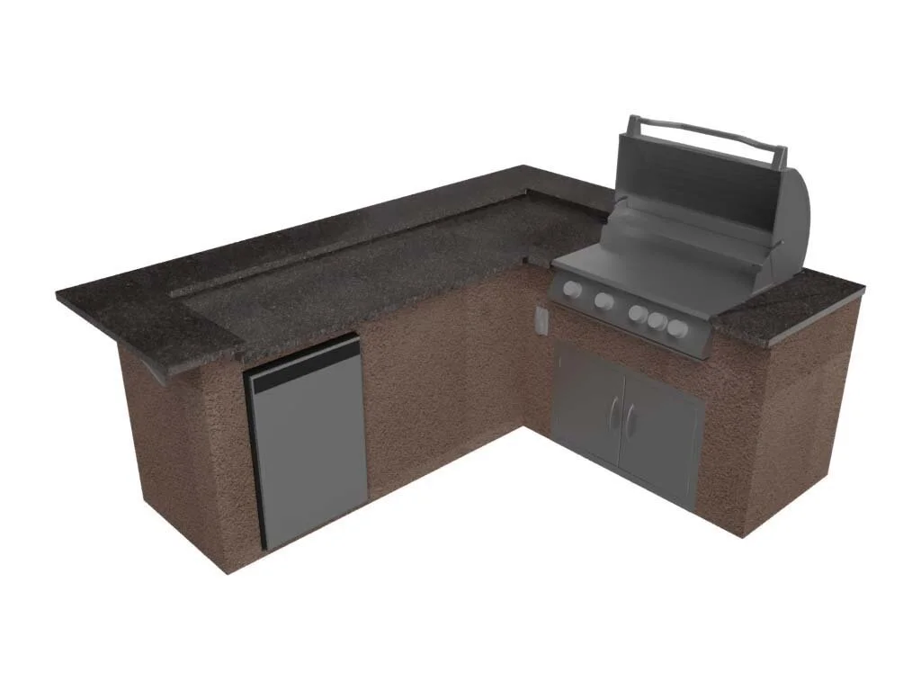 Our largest L-shaped island with counter seating for up to 7 people. Component side is large enough to accommodate additional drawers, doors and other features. Locate the Triple Crown island close to the house or near the pool to create a gathering and dining zone.